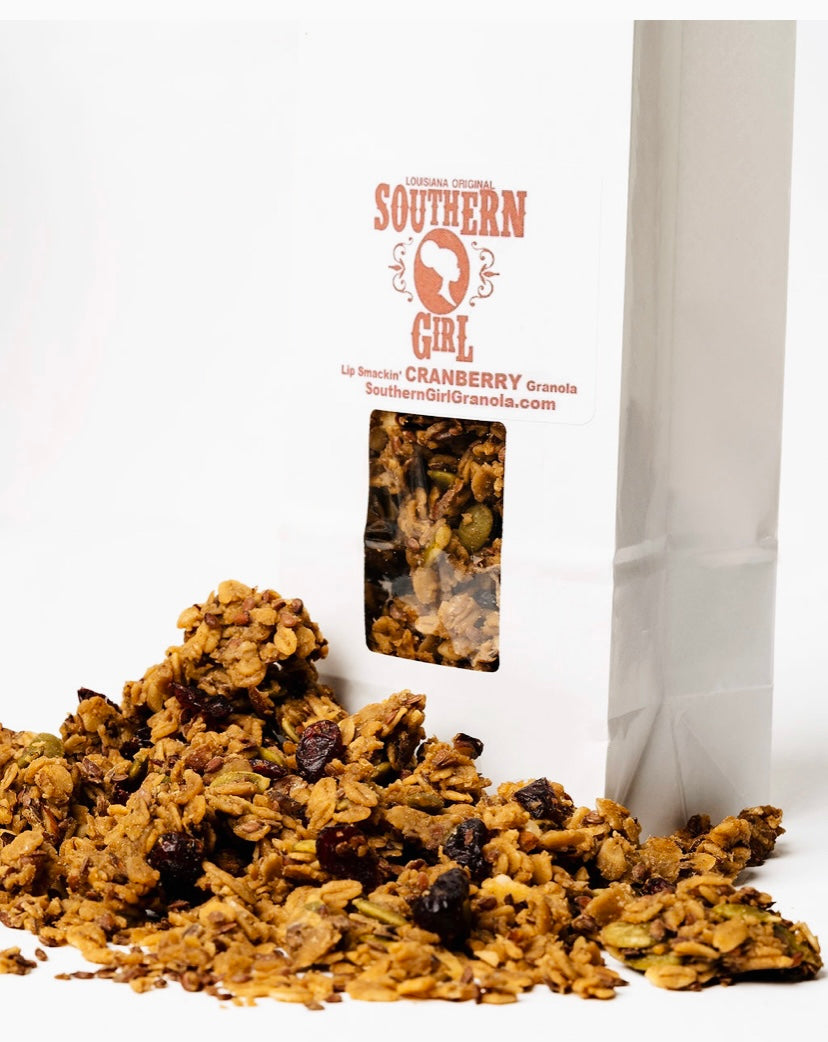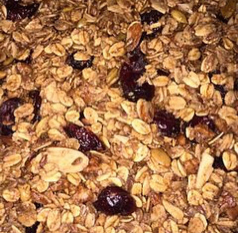 Plump, rich dried cranberries, perfectly blended with nutritious oats, raw sugar, pumpkin & flax seed, nuts & spices and love, into a decadent, vegan snack.