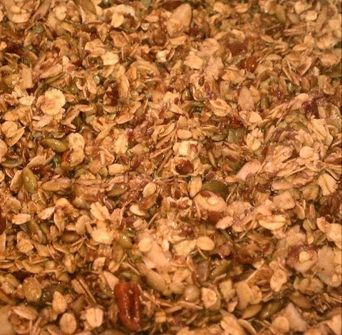 Nutritious oats, raw sugar, pumpkin & flax seed, nuts & spices perfectly blended with love, into a decadent, vegan snack.